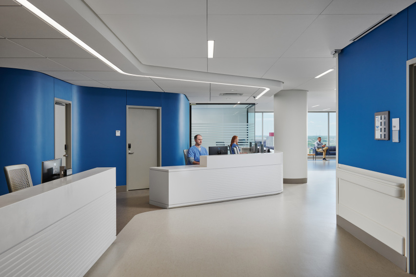 Additionally, as an academic medical facility, more spaces for teaching are incorporated throughout the space; multi-purpose classrooms are on each patient floor, and a large conference center is adjacent to the main entrance. A local coffee shop operates inside the main lobby, adding to the hospitable environment. The experience of the new tower now matches the quality of care received and sets a new standard for additional renovation work of the existing hospital. The new patient tower has opened its doors, providing patients with the most advanced treatments and technology in a space designed for healing and comfort.